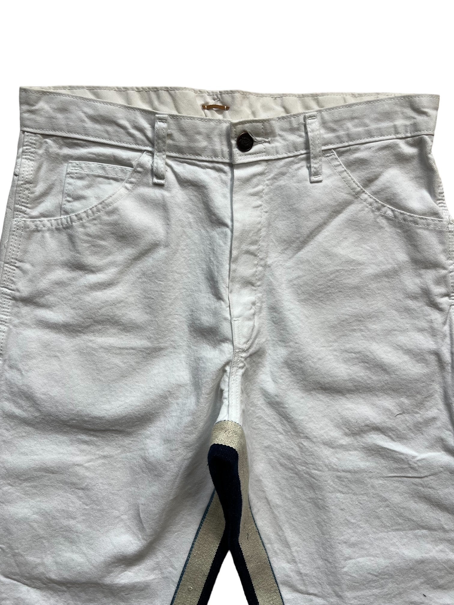 ウェスト約30インチのCOAST PANTSが入荷しました。インディゴカラーも2トーンのカラーのタイプが縫われていて、正面が生成り色部分が見えるように縫われていて、後ろからの見た目と異なる印象が面白いパンツです。ペインターパンツがベースなのでMATE JEANよりゆったりとしたシルエットになっています。ユニセックスで着用いただけます