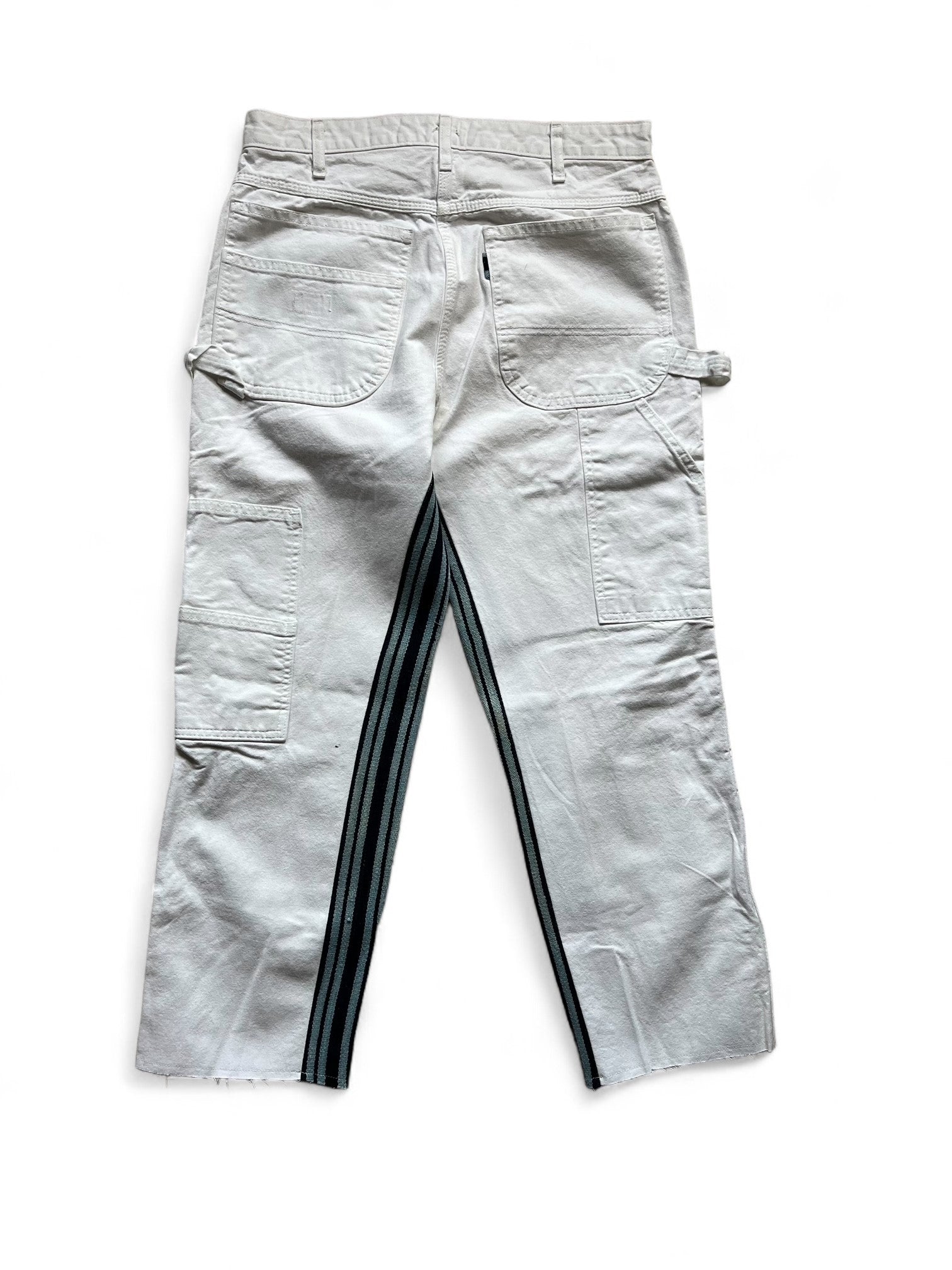 ウェスト約31インチのCOAST PANTSが入荷しました。こちらはきれいめにはくことができるタイプのコーストパンツです。ペインターパンツ自体もクリーンで、そこにインディゴのストライプがあわされています。ホワイトとブルーのコントラストを楽しめるパンツですね。ペインターパンツがベースなのでMATE JEANよりゆったりとしたシルエットになっています。ユニセックスで着用いただけます