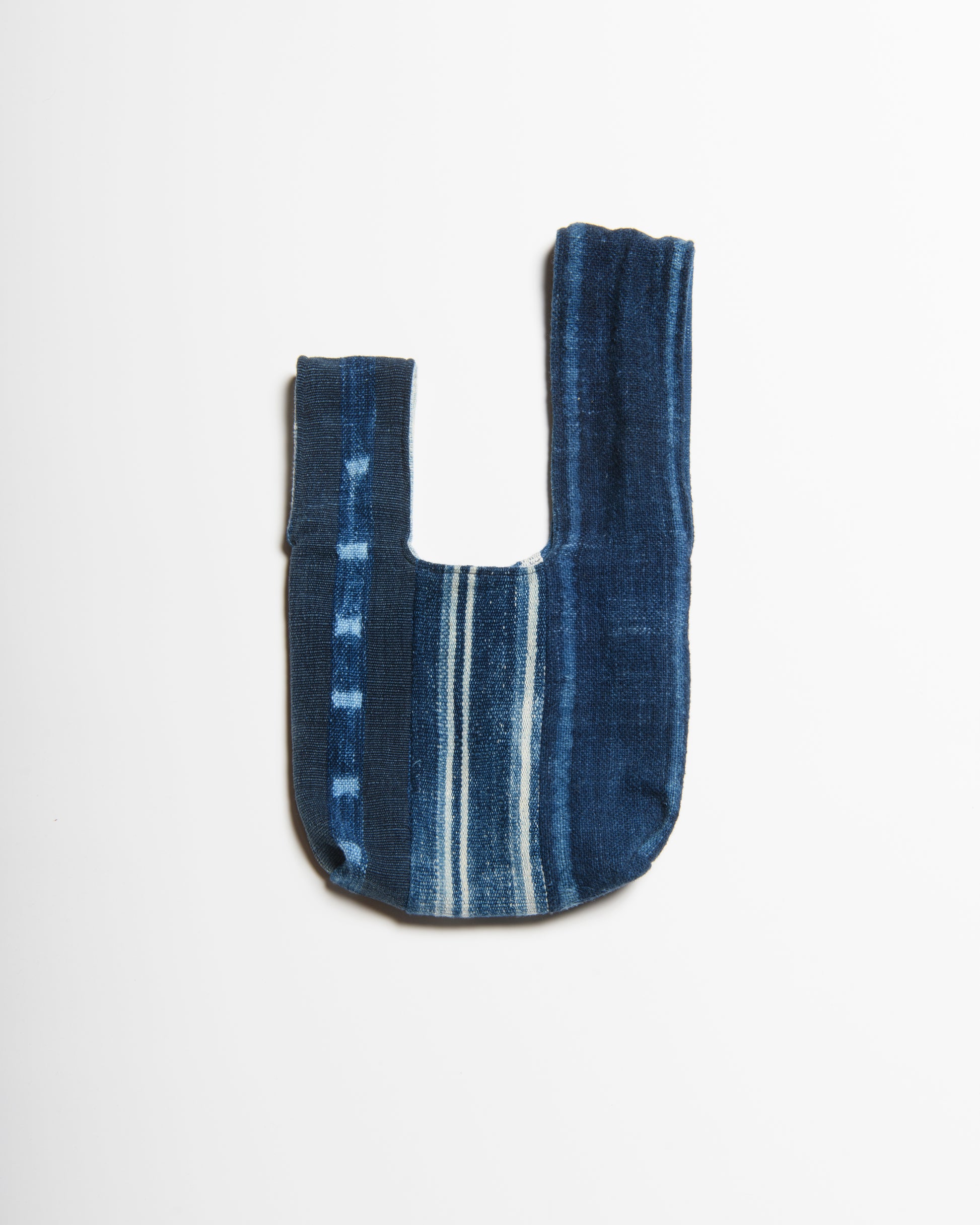 表と裏に別々のインディゴファブリックが使われているリバーシブルバッグ。