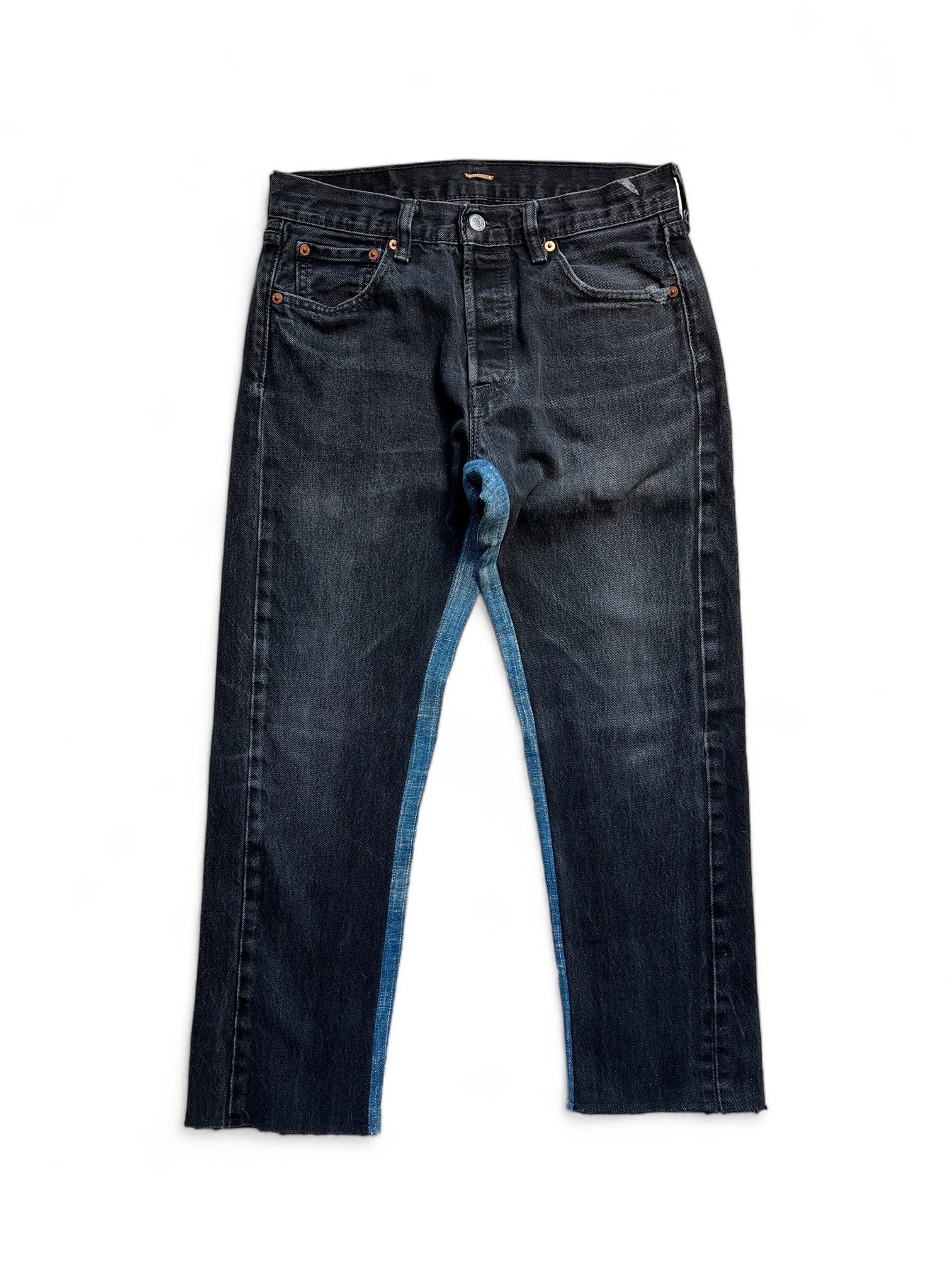 ウエストサイズ約29インチのblackのMate Jeanです。これはコンディションの良いblack Denimをベースに作られています。インディゴの合わせに関しても単色のインディゴとの組み合わせがすっきりとかっこいい1本に仕上がっています。レザージャケットなどと合わせてもいいですね。A FRIEND MADEのデニムを初めて手に取る方にもコーディネイトに取り入れやすいはずなのでおすすめです