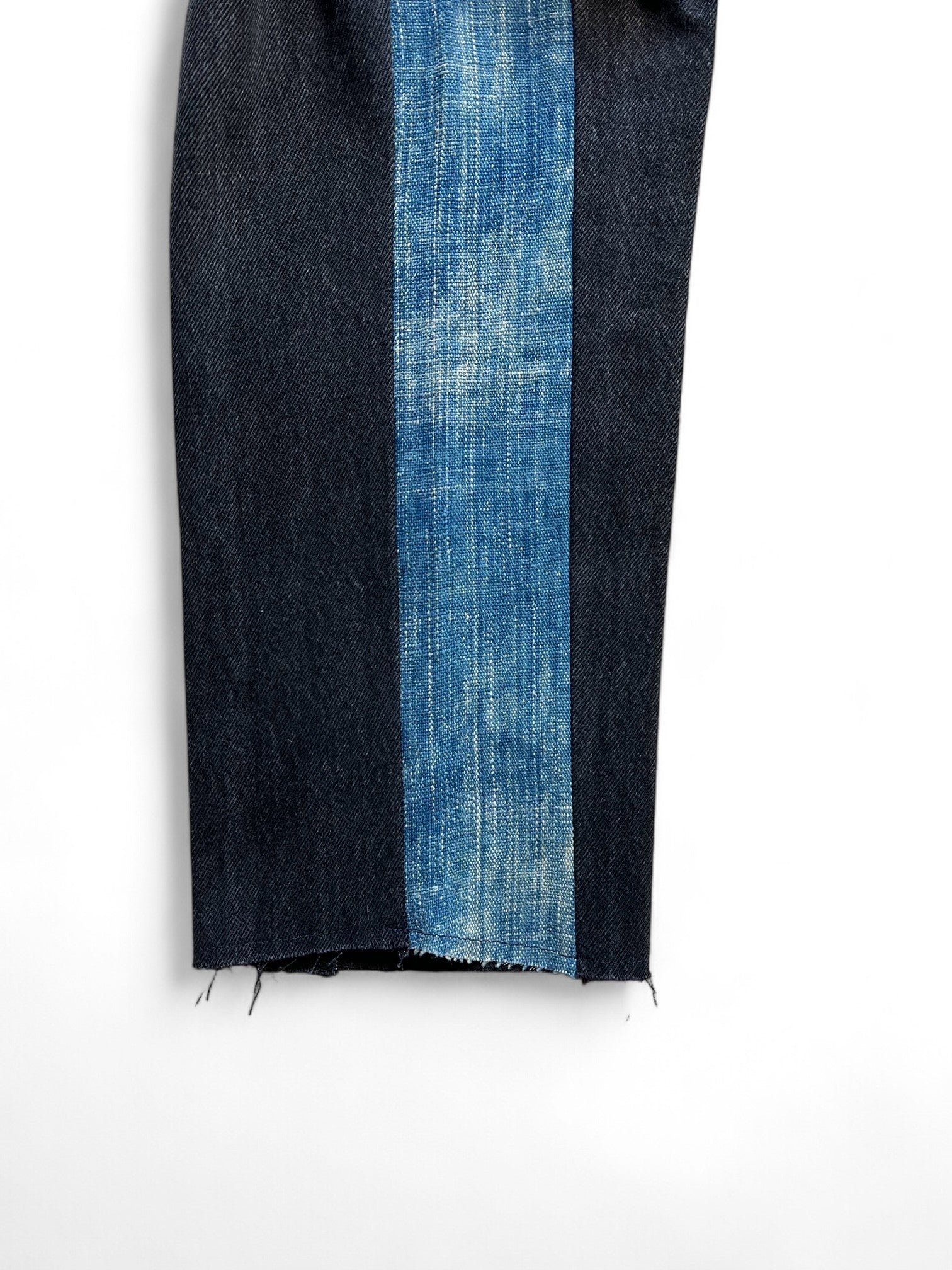 デニム生地とインディゴ生地のテンションの違いがあるため、通常ご使用のパンツよりワンサイズ大きめのサイズを推奨しております。生地の細かいディテールを保つため、ネットに入れて洗濯してください。